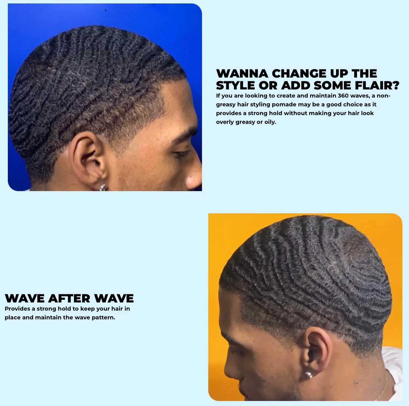 Then use our 360 wave pomade to seal in the moisture and a silk durag to lock in the style and let it dry.
