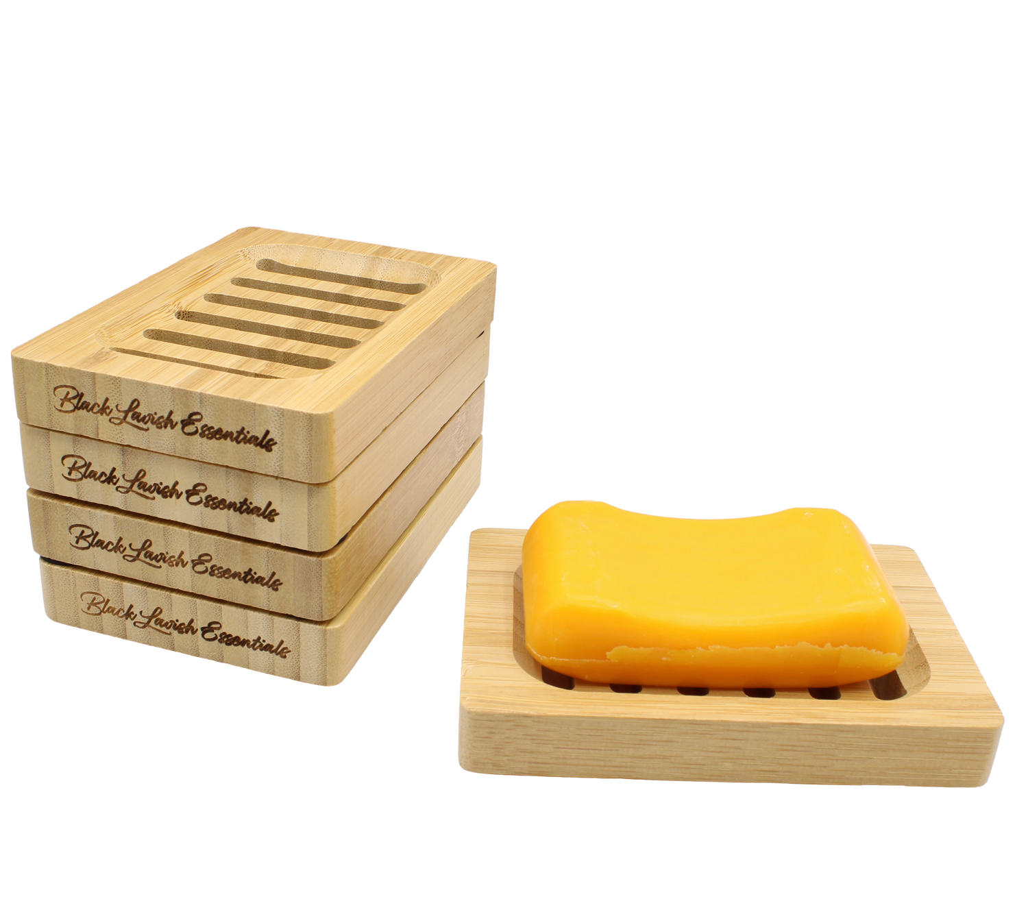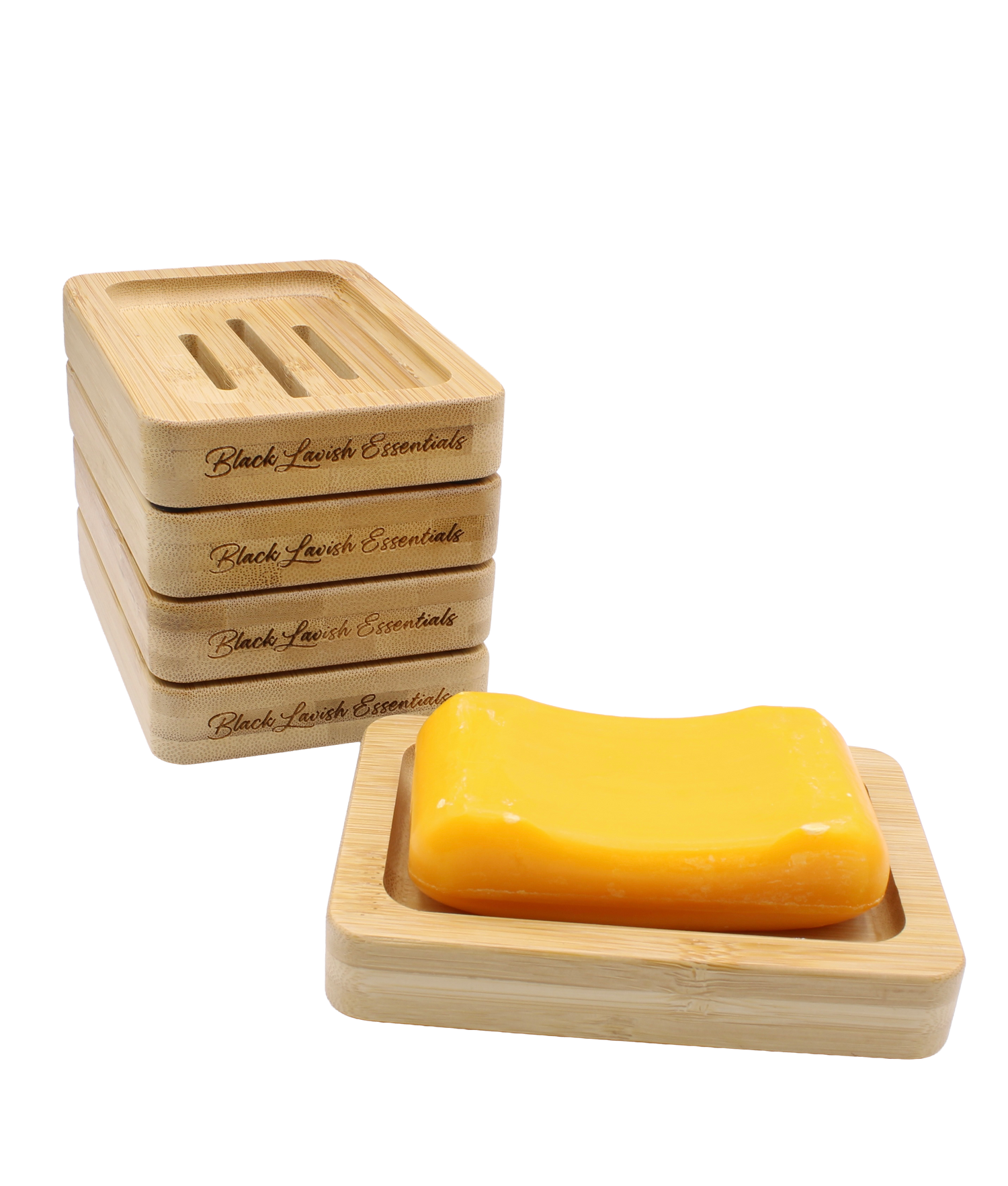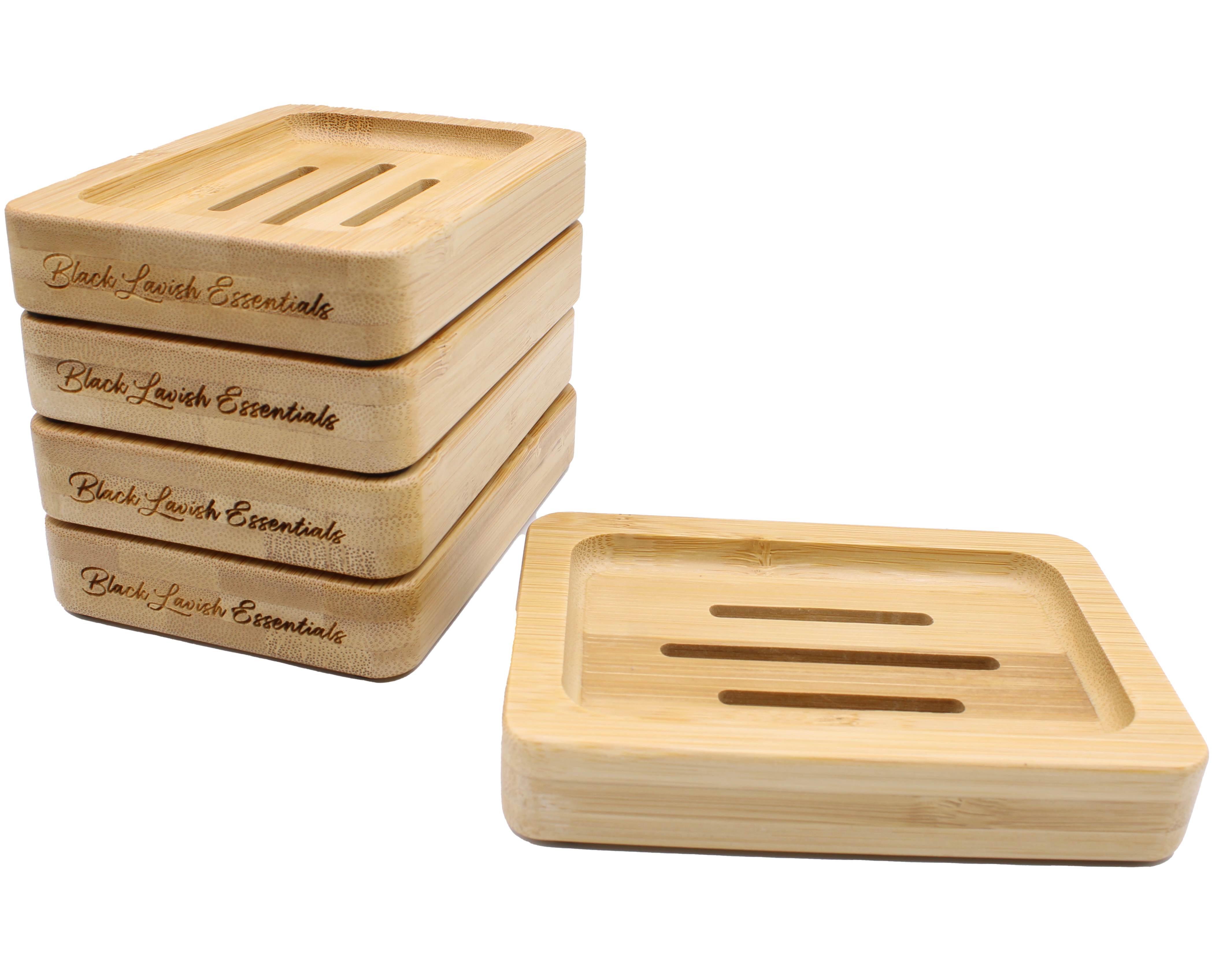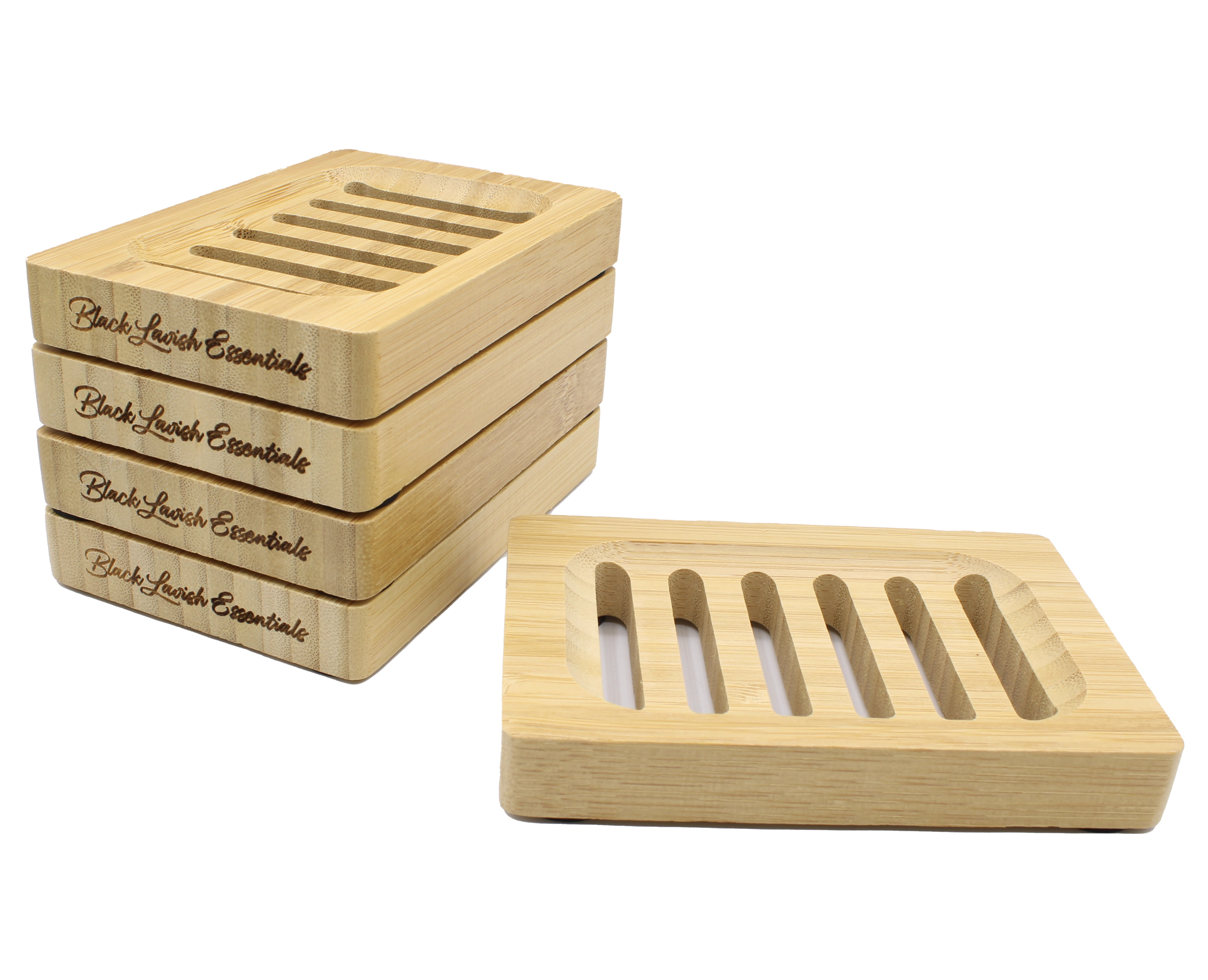 Crafted from premium eco-friendly bamboo, each dish is laser-engraved with the Black Lavish Essentials signature, giving it a refined, high-end finish. The thoughtful drainage design available in a Classic 3-Slot or Modern 6-Groove style keeps your soap dry, firm, and long-lasting by preventing messy water buildup.